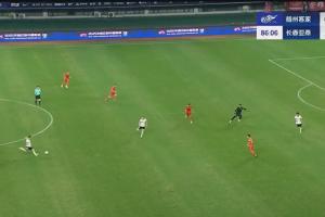 體育資訊04月11日訊 中超第6輪,梅州客家vs長春亞泰。比賽第87分鐘,梅州門將郭全博出擊變?yōu)觚堉?,徐越斷球后中場直接吊射得手,亞?-0領先!