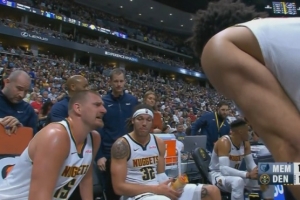 當(dāng)?shù)之?dāng)媽??約基奇暫停時激情演示戰(zhàn)術(shù) 助教在一旁頻頻點頭