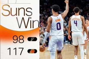 體育資訊4月12日訊 NBA常規(guī)賽,太陽117-98擊敗馬刺。