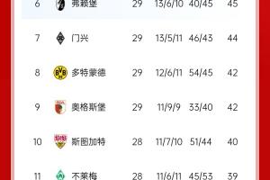 德甲還剩5輪,拜仁以69分領(lǐng)跑,勒沃庫(kù)森63分排第二。