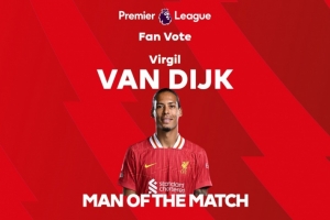 本場(chǎng)比賽范迪克打進(jìn)制勝進(jìn)球,賽后他也當(dāng)選英超官方球迷票選出的本場(chǎng)最佳球員。