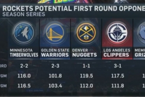 火箭與五大首輪潛在對手交手戰(zhàn)績以及場均得分和失分