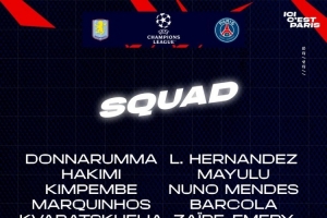 體育資訊4月14日訊 北京時(shí)間4月16日凌晨,巴黎將在歐冠1/4決賽次回合比賽中客場(chǎng)對(duì)陣維拉,首回合巴黎3-1取勝。巴黎公布了此役的球員名單,阿什拉夫、登貝萊、克瓦拉茨赫利亞在列,馬爾基尼奧斯結(jié)束停賽回歸名單。