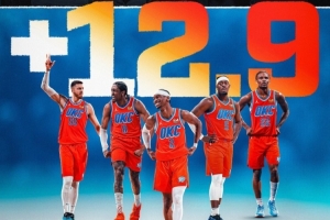 備注:此前紀(jì)錄由71-72賽季的湖人保持,場均凈勝12.28分