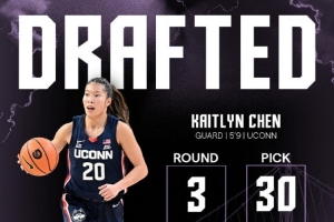 體育資訊4月15日訊 2025年WNBA選秀大會,康涅狄格大學的主力后衛(wèi)陳凱玲在第三輪總第30順位被金州女武神選中。