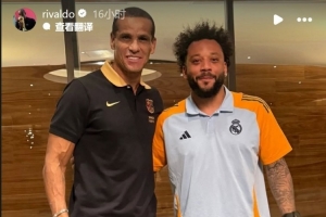 里瓦爾多在社交媒體上曬出與馬塞洛的合照,配文:“我很尊重身邊這個人,他踢得真棒。馬塞洛,你的名字已經(jīng)載入史冊?!?/p>