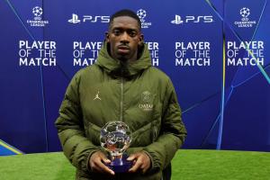 本場助攻努諾-門德斯的登貝萊獲本場官方最佳球員,起初他拒絕領獎,隨后的留影中表情嚴肅。