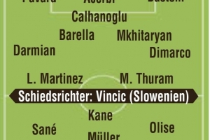 中場:恰爾汗奧盧、巴雷拉、姆希塔良、達(dá)米安、迪馬爾科