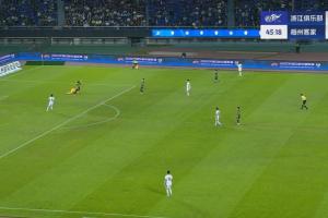 體育資訊04月16日訊 中超第7輪,浙江vs梅州客家,比賽第46分鐘,梅州客家門將郭全博在浙江隊的逼搶下被迫用手接回傳球,馬寧判罰間接任意球,隨后汪士欽的打門偏出。