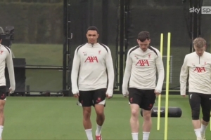 體育資訊4月16日訊 天空體育分享利物浦訓(xùn)練情況,阿諾德回歸合練。