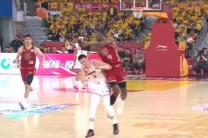 第三節(jié)初,胡明軒側(cè)身撞翻空中的迪亞洛。迪亞洛重重摔在地上,滾到場邊,起身后超級氣憤欲找胡明軒理論。裁判回看后,吹罰胡明軒違體犯規(guī)。