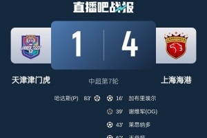 體育資訊4月16日訊 中超第7輪,天津津門(mén)虎主場(chǎng)1-4不敵上海海港,加強(qiáng)本場(chǎng)津門(mén)虎面對(duì)海港已經(jīng)遭遇五連敗。