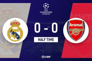半場(chǎng)結(jié)束,皇馬暫0-0阿森納。