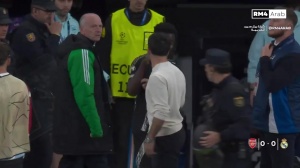 轉(zhuǎn)播鏡頭顯示,薩卡半場(chǎng)回更衣室回更衣室時(shí)被場(chǎng)邊觀戰(zhàn)的卡瓦哈爾拉住,二人發(fā)生了口角,并且互相推搡。