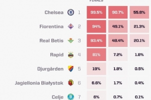 切爾西:四強99.5%,決賽90.7%,奪冠55.8%