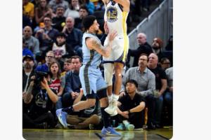 4月16日附加賽勇士VS灰熊比賽中,第二節(jié)小皮蓬防守庫(kù)里3+1