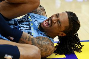 在上一場(chǎng)對(duì)陣勇士的比賽中,莫蘭特在一次撤步跳投落地崴腳痛苦倒地,隨后吃上止疼藥堅(jiān)持上場(chǎng)。