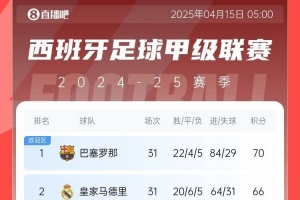目前巴薩以70個(gè)積分排名西甲第一,距離第6的貝蒂斯(48分)有22個(gè)積分之多,在聯(lián)賽只剩下7輪的情況下,巴薩即便全敗也能保底第5名的位置。