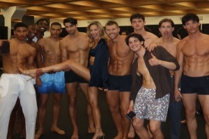 其中她分享了后臺照,包括一張與10名男模的合影。