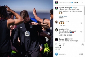 體育資訊4月19日訊 巴薩門將什琴斯尼更新社媒動態(tài),感謝大家的生日祝福。