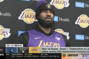 體育資訊4月19日訊 今日,湖人前鋒詹姆斯在訓(xùn)練后接受了采訪。