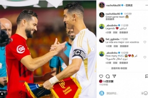 效力于卡迪西亞的納喬更新社媒動(dòng)態(tài),曬出與老隊(duì)友C羅賽前致意的合照,配文:“精彩的比賽,團(tuán)隊(duì)??”