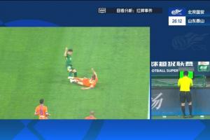 體育資訊04月19日訊 國(guó)安vs泰山第27分鐘,吳興涵飛鏟林良銘小腿!主裁判唐順齊出示黃牌!