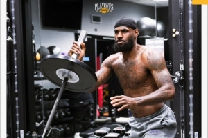 體育資訊4月19日訊 今日,湖人官推曬出一張前鋒詹姆斯進(jìn)行力量訓(xùn)練的賽前熱身海報(bào),預(yù)熱季后賽首輪G1。