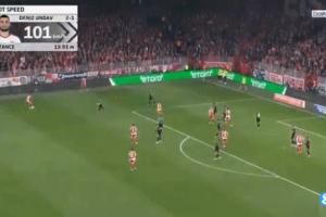 上半場(chǎng)第38分鐘,萊特送助攻,奎菲爾德轟入超40米的超級(jí)世界波!皮球時(shí)速118公里!