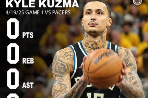 本場(chǎng)比賽庫(kù)茲馬出戰(zhàn)22分鐘,5中0(三分2中0),罰球也是2中0,除2次犯規(guī)外其余數(shù)據(jù)欄皆是0,正負(fù)值-24。