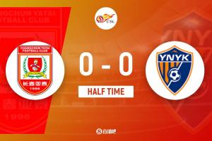 上半場比賽結束,長春亞泰0-0云南玉昆。