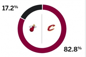 賽前ESPN預測了本場比賽的結(jié)果,騎士勝率高達82.8%,熱火僅為17.2%。
