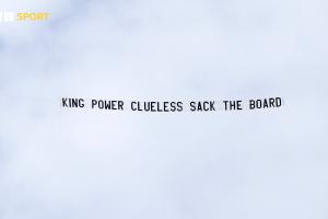 一些萊斯特城球迷籌集資金,在本場比賽開始之前用飛機(jī)拉橫幅,對俱樂部高層表達(dá)不滿,橫幅上面寫著:“王權(quán)無能,解雇董事會?!?/p>