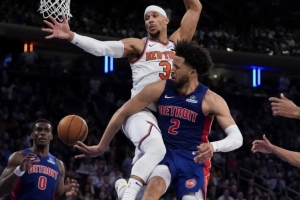 對(duì)陣活塞的首場季后賽,在前三節(jié)結(jié)束落后8分的情況下,第四節(jié)尼克斯繼續(xù)上強(qiáng)度,最終單節(jié)40-21凈勝19分,迎來最后的逆轉(zhuǎn)。全場布倫森34分2籃板8助攻,阿努諾比23分7籃板5搶斷,約什·哈特13分7籃板6助攻,唐斯23分11籃板5助攻4搶斷2蓋帽。替補(bǔ)奇兵卡梅隆·佩恩在第四節(jié)與布倫森聯(lián)袂出擊,全場7中5拿下14分。尼克斯最終取得比賽勝利與球隊(duì)強(qiáng)悍的防守密不可分。不過,布里奇斯的表現(xiàn)有些低迷,需要盡快找回狀態(tài)。季后賽第二場,鐵血尼克斯欲再次捍衛(wèi)主場。