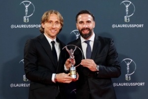 莫德里奇:“我們代表皇馬感謝勞倫斯組織,我們?nèi)?duì)都很榮幸獲得這一殊榮。我們度過了一個精彩的賽季,贏得了許多獎杯,并在球場上展現(xiàn)了卓越的表現(xiàn)?;蜀R總是激勵你達(dá)到巔峰,讓你拼盡全力,就像我們上賽季所展現(xiàn)的那樣。我們配得上這個獎項(xiàng)。”