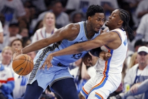 首場季后賽131-80狂勝灰熊,雷霆證明了本隊(duì)常規(guī)賽戰(zhàn)績第一的實(shí)力。比賽開始后,灰熊采取了包夾亞歷山大防守策略,也一度讓常規(guī)賽MVP最大熱門人選在首節(jié)6投1中,但這給了雷霆眾將全面爆發(fā)的機(jī)會。全場杰倫·威廉姆斯20分5籃板6助攻,亞歷山大15分3籃板5助攻,切特·霍姆格倫19分10籃板,阿隆·維金斯21分4籃板2助攻。由于早早大比分領(lǐng)先,雷霆首發(fā)五虎出場時間都在26分鐘以下。依托本隊(duì)出色的機(jī)動能力,雷霆的輪轉(zhuǎn)換防和包夾讓灰熊在進(jìn)攻上無所適從。本場尼古拉·托皮奇和烏斯曼·吉昂繼續(xù)缺席比賽。