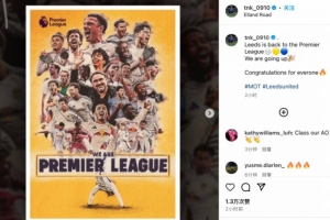利茲聯(lián)中場(chǎng)、日本國(guó)腳田中碧今日更新社媒,曬出球隊(duì)升英超的海報(bào),并配文寫道:“利茲聯(lián)重回英超聯(lián)賽,我們更上一個(gè)臺(tái)階。祝賀這里的每一個(gè)人?!?/p>