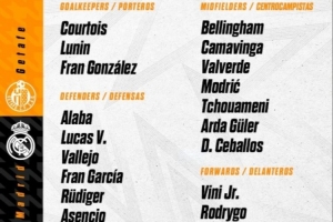 體育資訊4月22日訊 北京時間4月24日凌晨3:30,2024-25賽季西甲聯(lián)賽第33輪,皇馬將客戰(zhàn)赫塔費。賽前,皇馬官方公布本場比賽名單,姆巴佩傷缺,維尼修斯領(lǐng)銜鋒線,巴列霍在列。