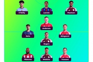 中場:埃利奧特-安德森(諾丁漢森林)、厄德高(阿森納)、內(nèi)托(切爾西)、羅杰斯(維拉)
