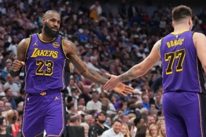 詹姆斯場均28.3分8.0籃板7.0助攻;東契奇場均33.6分7.8籃板8.6助攻。