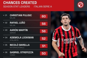 本賽季意甲創(chuàng)造機(jī)會(huì)榜: