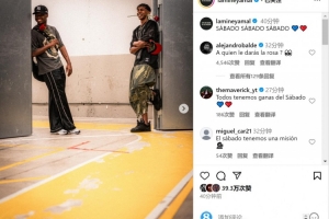 亞馬爾更新社媒動態(tài),曬出與法蒂的合照,他在照片中口銜玫瑰,配文:“周六、周六、周六????”