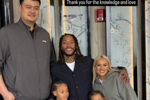 昨天,羅斯在INS曬出了和姚明的合照,并寫道:“很瘋狂呀,我和你對抗過的姚,哈哈。感謝你的認可與愛。”