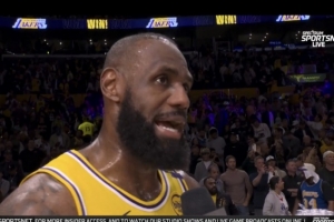 體育資訊4月23日訊 今日,湖人94-85主場擊敗森林狼,將系列賽大比分扳為1-1平。賽后,湖人前鋒詹姆斯接受了采訪。