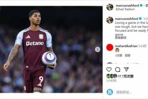 拉什福德社媒曬出自己的照片,并寫道:“在最后幾分鐘輸?shù)舯荣惡茈y受,但我們必須保持專注,為下一場(chǎng)比賽做好準(zhǔn)備?!?/p>