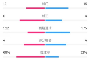 全場比賽數(shù)據(jù)如下(阿森納在前):