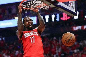 體育資訊4月24日訊 NBA季后賽首輪G2,火箭半場(chǎng)60-46領(lǐng)先勇士。