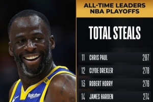 這樣一來,追夢生涯季后賽搶斷數(shù)達到246個,超越火箭名宿奧拉朱旺(245)排名歷史第20位!