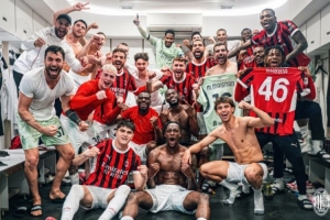 賽后米蘭官方社媒曬出多張照片,慶祝球隊取勝,其中包括球員們在更衣室內(nèi)的大合照。