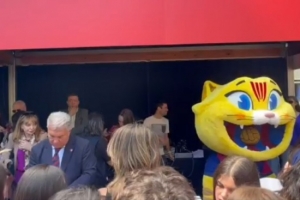 在巴薩1-0戰(zhàn)勝馬洛卡后,俱樂部主席拉波爾塔今早現(xiàn)身巴薩帳篷區(qū),與吉祥物CAT共同出席圣喬治節(jié)圖書簽售活動。